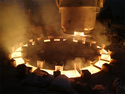 騰飛鑄鋼擁有2個大型鑄造基地,8個造型地坑,可生產(chǎn)單件重量150噸鑄鋼件,采用水玻璃砂造型工藝,目前擁有25噸、30噸、50噸煉鋼電爐4臺、120噸精煉爐1臺;150噸大型拋丸機1臺,4臺大型天燃?xì)鉄崽幚頎t,30臺起重設(shè)備,起吊200噸。精良的設(shè)備,為優(yōu)質(zhì)的鑄鋼件的生產(chǎn)提供了保障。