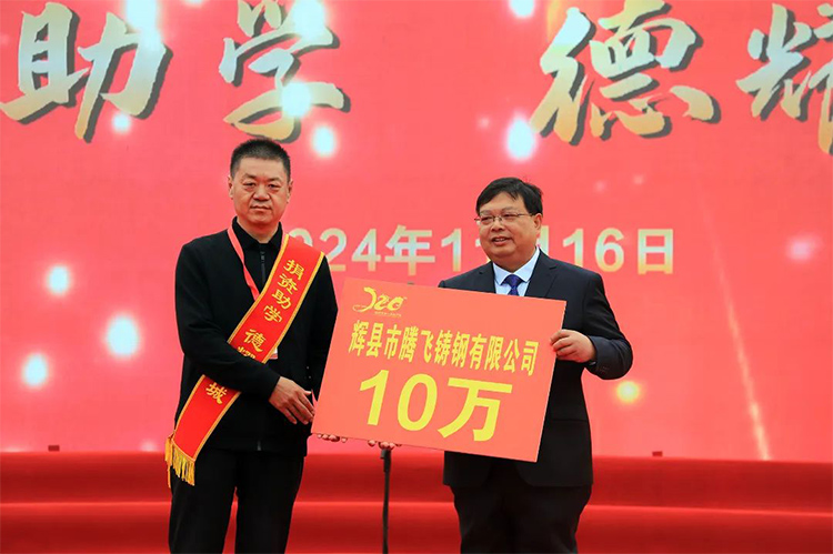 在這個(gè)意義非凡的日子里,我們公司的李總受邀出席了這場慶典。李總不僅作為嘉賓參與,更通過實(shí)際行動(dòng)展現(xiàn)了對教育事業(yè)的支持與尊重——騰飛鑄鋼慷慨捐贈了十萬元人民幣,支持學(xué)校發(fā)展。