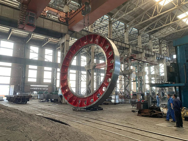 美卓公司來圖定制的φ8221大齒輪,材質(zhì):ZG45CrMo,是目前豫北地區(qū)生產(chǎn)蕞大磨機(jī)大齒輪,其質(zhì)量要求更是完全超過了國內(nèi)標(biāo)準(zhǔn),要求UT、MT一級(jí)探傷。