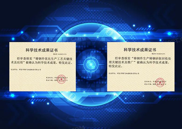 2022年7月6日騰飛鑄鋼再次獲得2項(xiàng)河南省科技成果。