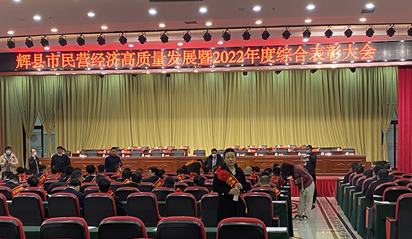 2023年2月3日,輝縣市委、市政 府組織召開輝縣市民營經(jīng)濟高質量發(fā)展暨2022年度綜合表彰大會,輝縣市委、市政 府領導班子出席,我公司王總受邀參會。