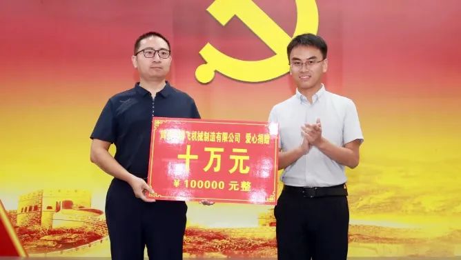 2023年9月8日,河南騰飛鑄鋼參加孟莊鎮(zhèn)政 府舉辦的“99公益日”捐贈(zèng)儀式,并捐款10萬元整。
